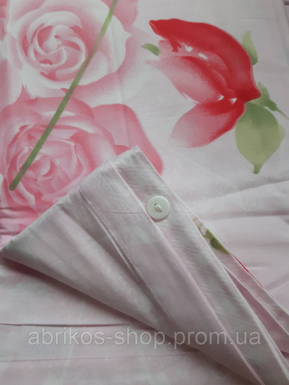 Колірна гама: підковдра: ніжно-рожеві троянди на світлому тлі, з червоними кольорами.